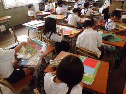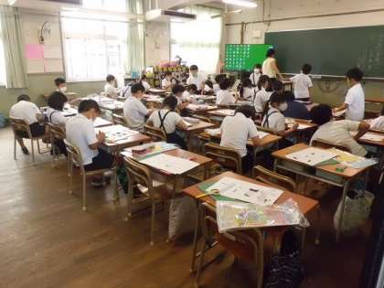 図工の時間で、カッターを使って、作品づくりが始まりました。