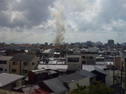 近隣で火事なのでしょうか、ヘリコプターも旋回して