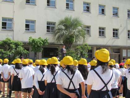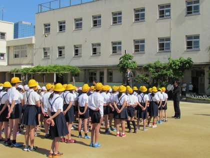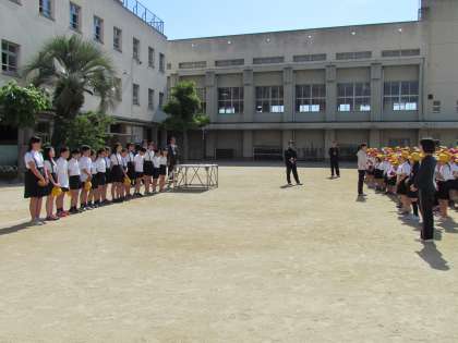 5月11日(月)児童朝会を行いました。今日は気温16度で吹く風もとてもさわやかな朝でした。まさしく五月晴れです。児童全員が正門から登校するようになって、一カ月が過ぎました。だんだんと登校の様子もよくなってきました。分団登校に遅れる子どももいますが、遅刻者は少なくなってきました。また、朝の挨拶も大きな声でいう子どもが増えています。そのようなことを今日の児童朝会で話をしました。