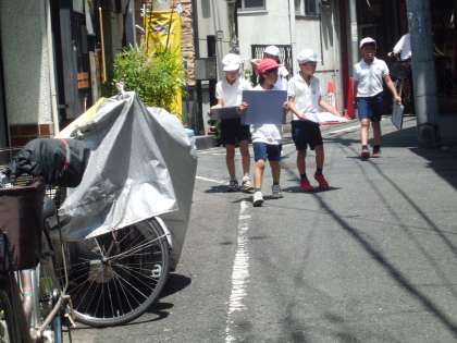 3年生は本日(5月13日)校区たんけんに行きました。桃谷駅周辺から寺田町駅周辺まで、校区を隈なく歩き回りいろいろなところを探検しました。途中のお店でお話を聞いたり、チラシをいただいたり、校区の方々と触れ合うこともできました。保護者の方々にもご協力いただきありがとうございました。