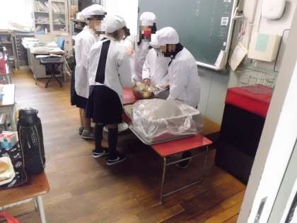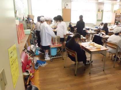 給食時間に3、4年生の教室を覗いてみると、ちょうど配膳中。