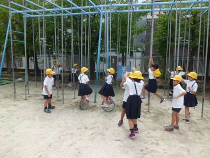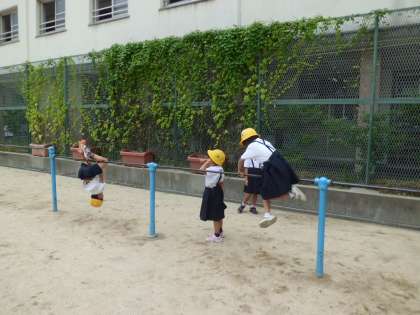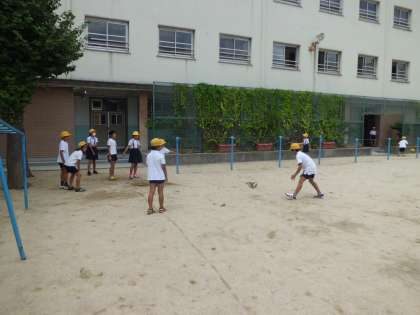 雨や曇り空など不安定な天気が続いています。その中を子どもたちは元気に運動場で遊んでいます。学期はじめ少し蒸し暑いせいか、大勢の子どもとはいきませんが、時間を有効に使っています。また、学習の始まりのチャイムで運動場にいる子どもは走って校舎にむかいます。