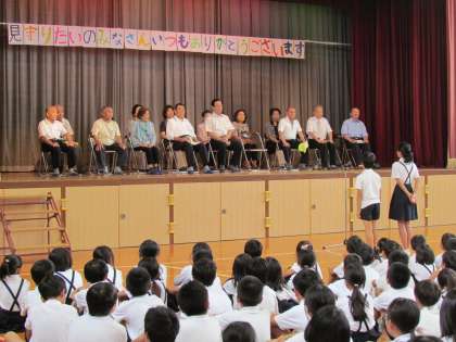 土曜授業で、見守り隊の方々との交流会を行いました。16名の方が出席してくださいました。自己紹介やインタビューなど、楽しい一時を過ごすことができました。見守り隊の方からは、「子どもたちから元気をもらっています。」という温かい言葉をいただくことができました。見守り隊の皆様、これからもよろしくお願いします。