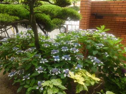 玄関入って右手には、皆さんごぞんじの通り、アジサイがうわっています。今が満開です。奈良の矢田寺や京都の三室戸寺の方もアジサイが咲きほこっています。