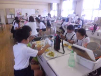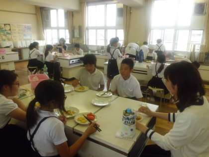 6月18日(木)6年1組の家庭科の調理実習がありました。野菜いため、スクランブルエッグです。お互いに協力して調理した後、グループごとに味わいました。