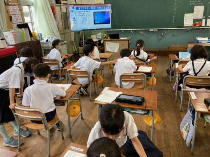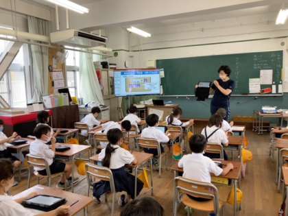 1年生は、初めてタブレットを使った学習に取り組みました。
