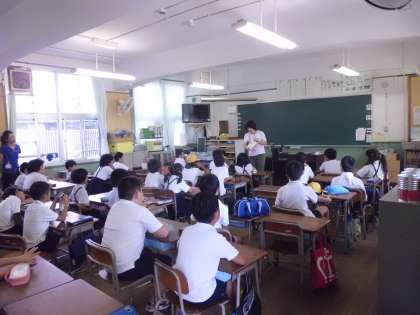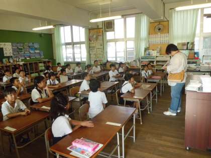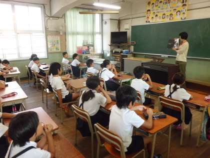 2学期が始まり1週間が過ぎました。日中は日差しがきついですが、8月の暑さにくらべるとずいぶんと過ごしやすくなってきました。子どもたちは少しずつですが、学校生活に慣れてきています。2学期になって初めての本の読み聞かせをしていただきました。1学期同様、子どもたちはボランティアの方の話を静かに真剣に聞き入っていました。9月10日(火)
