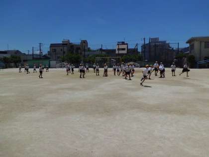 運動場はわずかな風で砂埃が舞い上がります。