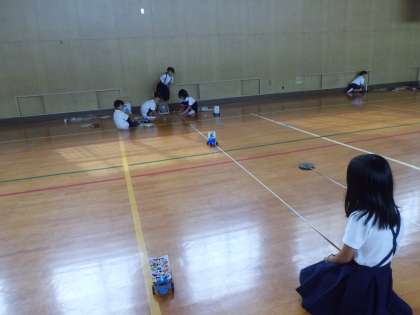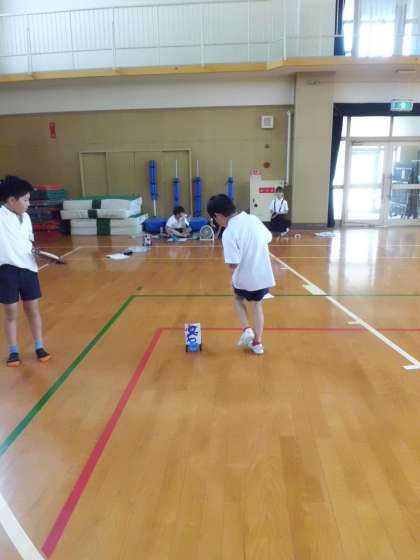 6時限目、理科で「風とゴムのはたらき」について学習しました。帆をつけた車に強い風と弱い風を当て、進み方がどう変わるのかの実験をしました。風の働きについていろいろと知ることができました。