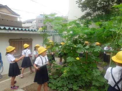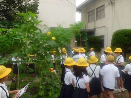 4年生が理科の学習で植物の観察を行いました。学習園や運動場周辺にある草木の様子をグループごとに用紙に記入していきました。