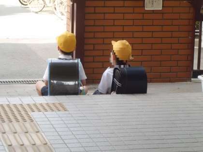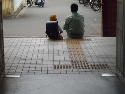 正門前の階段で、ゆっくり語りあう姿を連日みかけます。