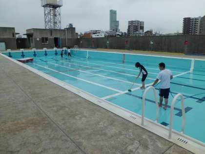 7月8日(水)教職員で分担してプール清掃を行いました。雨模様の日が多いですが、子どもたちにきれいな水で楽しく泳いでもらいたいです。