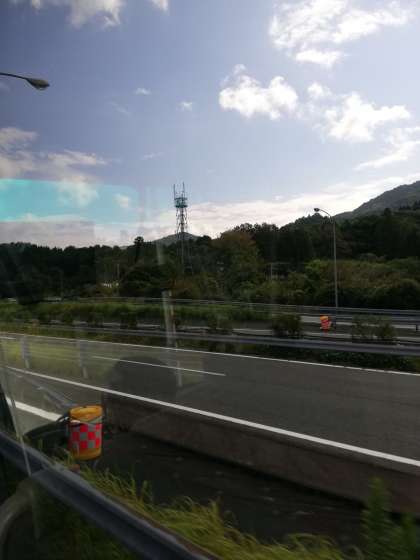 やっと青空が見えてきました。 鳥羽をめざして、みんな元気です。