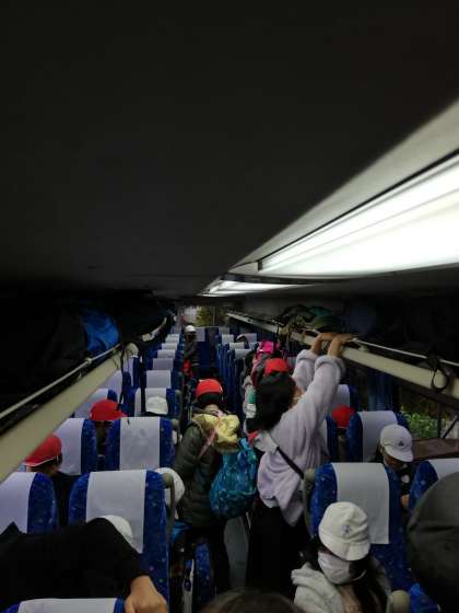 ずっと雨が降っています。 全員バスに乗り込みました。