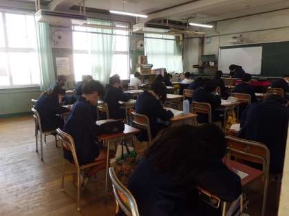 今日は、学力経年調査(3、4、5、6年)と模擬検定(1、2年)を行いました。