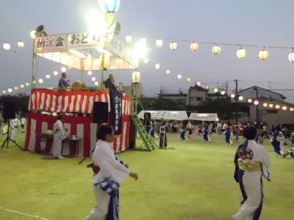 勝山連合の盆踊りが小学校の運動場で開催されています。7月31日(金)、8月1日(土)の2日間で19時から22時まで行われます。昼間の暑さがまだ冷めきらない状態ですが、おおぜいの方が来られています。今年はやぐらの上での生演奏で行われていて、迫力があります。お店もたくさん出ていて活気があります。是非お越しください。