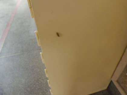 げた箱の側面に向けて写真を撮っています。