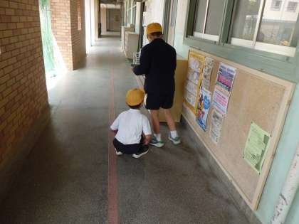 廊下を渡って、げた箱まで