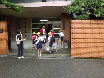 今日(9月7日)から1週間、登校時、児童会の子どもたちによる挨拶の声掛けを行っています。全員の子どもたちが、自分からすすんで大きな声で言えるようになってほしいです。画用紙で作ったたすきをかけてしています。