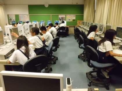 6年生の家庭科の学習の様子です。パソコンルームで、エコグッズづくりの調べ学習をしました。家庭で使わなくなったものを再利用します。自分の作りたいものをしっかりと調べることができました。できあがりが楽しみでしょう。