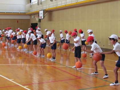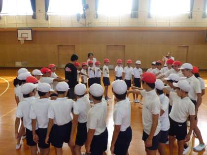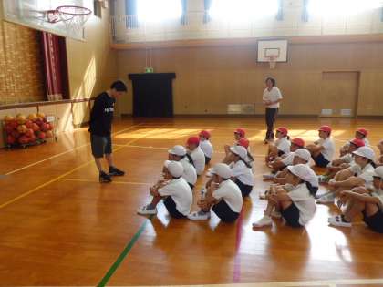 9月15日(火)大阪エベッサのコーチの方が来校、バスケットボールの授業をしてもらいました。2時限目に5年生・3時限目に6年生が講堂でドリブルやシュートのワンポイントを教えてもらいながら、楽しくボール操作を学ぶことができました。すぐには上達しませんが、今日、教えてもらったことを今後行うバスケットボールの授業の中で、生かしていってもらいたいと思います。