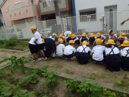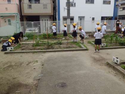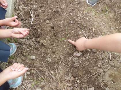種まきより虫捕りに夢中になっている子どもがいますが、