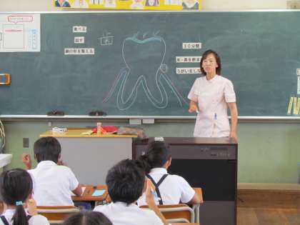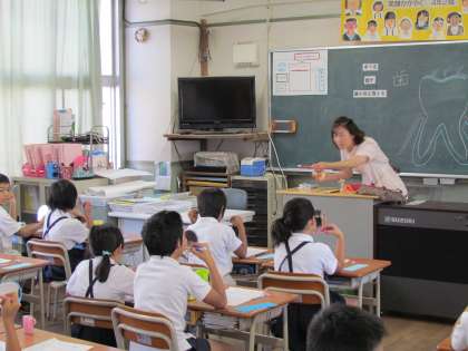 歯科衛生士さんによる歯みがきなどの指導の様子(4年2組)