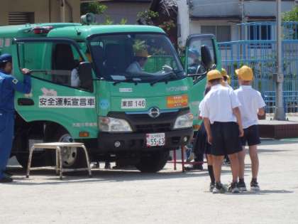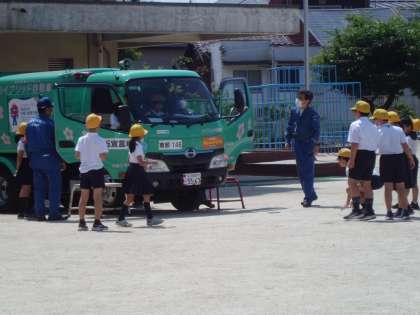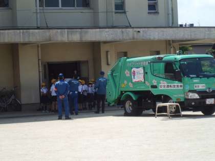 パッカー車を見ながら、ゴミの処理やリサイクルなどについても