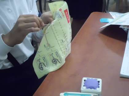 5年生は、裁縫道具を使っての実習です。