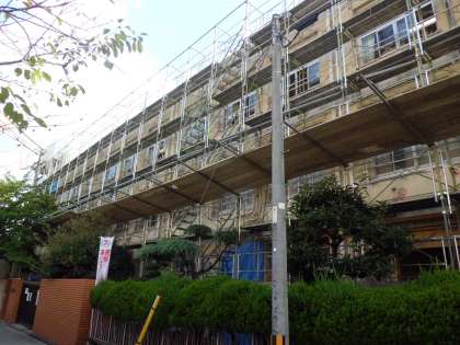 10月6日(火)、北校舎の道路側のシートが外されました。教室の方も明るくなりました。少しずつですが、工事の方は進んでいます、
