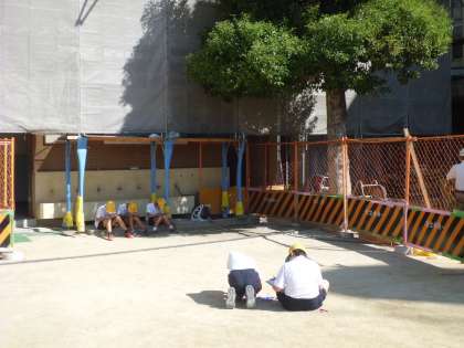 10月13日2時限目、4年が理科学習で「季節の自然観察」を行いました。4年は、「自分の木」を決めて、継続観察をしています。今日は、秋の様子を観察しました。1年の流れの中で自然を見ていきます。四季それぞれの様子から、いろいろな事がわかります。