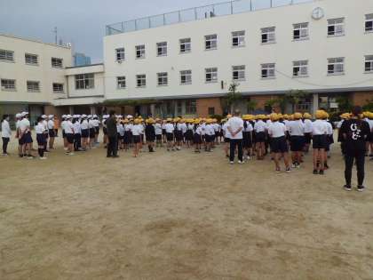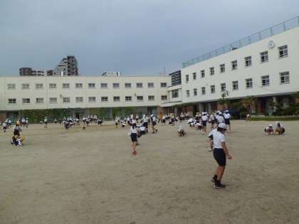 今日は、生活目標集会と運動会に向けてのグランドの石拾いを行いました.