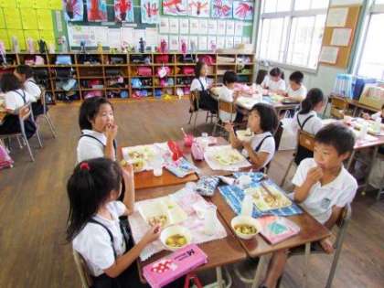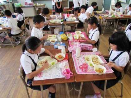 食缶や食器を返しに来た児童からは「ぶどう、おいしかった