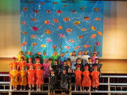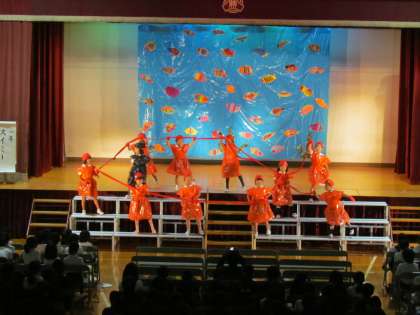 11月8日(日)、学習発表会を行いました。写真は、1年生の発表の様子です。どの学年も、台詞の言い方や動作がきちんとできており、互いに協力しながら役を演じきることができました。子ども達も、多く方に見ていただくことができて励みになりました。ありがとうございました。