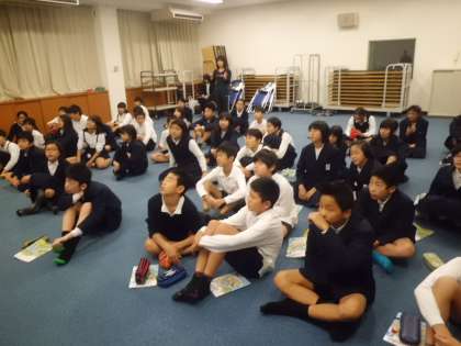 11月13日(金)3時限目に外国語活動がありました。C−NETの方が発音される英語を同じように言います。ネイティブの方の発音と同じように言うのは難しいですが、近づけるように発音していました。