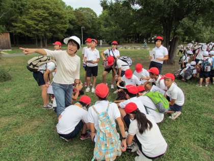 10月8日(火)に全校遠足で大泉緑地に行きました。途中で一時的に雨が降ってきましたが、何とか予定通りの活動ができました。午前中は広い公園内でオリエンテーリングを行いました。その中で、リーダーの6年生が低学年の子たちにやさしく声をかけ、みんなをしっかりまとめていました。そのため、どのグループも全員元気にゴールすることができました。午後からは、グループに分かれて、6年生を中心にして、みんなで遊びました。これからも6年生として、リーダーシップを発揮していってほしいと思います。