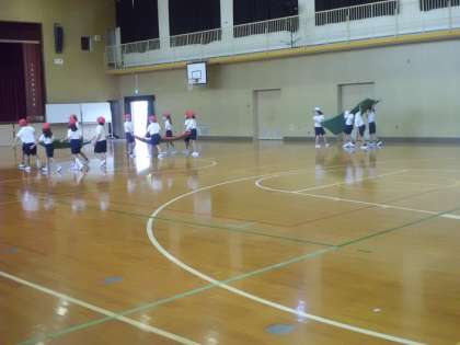 運動場か体育館のどちらかで行います。