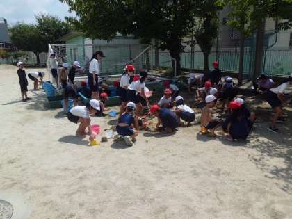 1年生と3年生は、どろんこ遊びを楽しみました。