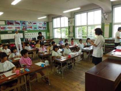 10月11日(金)、2・3時限目に、2年生の歯みがき指導が行われました。前歯の1本を染め出し液で染めてもらい、鏡で観察した後、歯をみがく練習を2回行いました。「しこうに虫歯きんが、いっぱいいることがわかった。」「きちんとみがけていると思っていたが、みがき残しがいっぱいあったのでびっくりしました。」「これからは、歯をきれいにみがきたいと思います。」等の感想がよせられました。児童のみなさん、しっかりと歯をみがいて、歯を大切にしてくださいね。