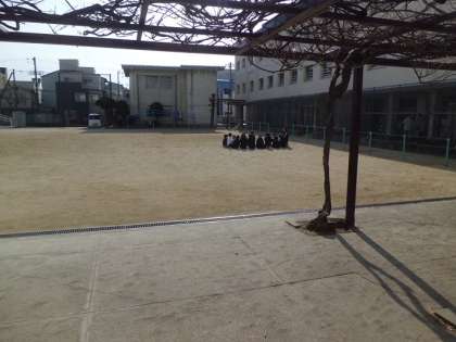 そんな冬晴れのなかで輪になって座り、ゲームをしている子どもたちをみつけました。