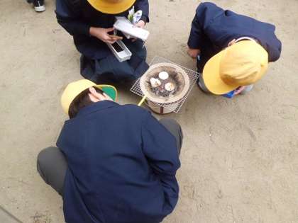 3年生は、七輪を使ってのもち焼き体験授業を行いました。