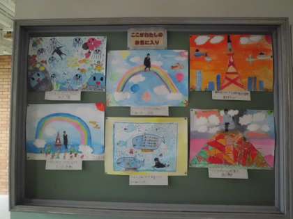 玄関入って右手の掲示板に3年生の作品、「ここがわたしのお気に入り」を掲示しています。来校された時にご覧ください。