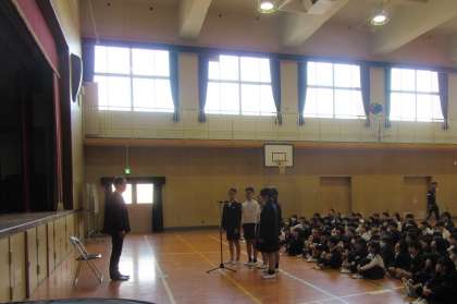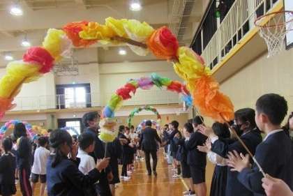 南校長先生からみなさんへのメッセージをいただいた時には、涙を流している人もたくさんいました。最後にみんなで花道を作って、南校長先生をお送りしました。