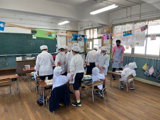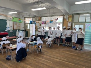 6年生のお手伝いの最終日、4月24日(木)給食の時間に1年生の教室に行くと、ちょうど6年生のみなさんにお礼を言っているところでした。「6ねんせいのみなさん、ありがとうございました!」