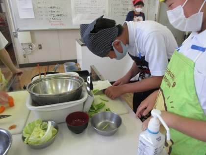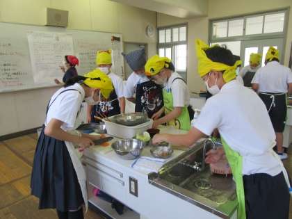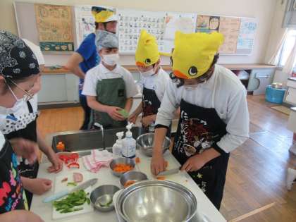 5月20日(火)、6年生が調理実習で「ハム入り三色野菜いため」と「スクランブルエッグ」を作りました。5年生の時に調理実習を何度か経験している6年生は、さすがに手際よく調理を進めて、時間内にしっかり片付けまでできました。