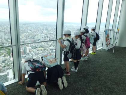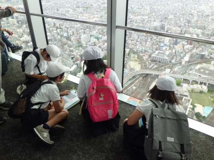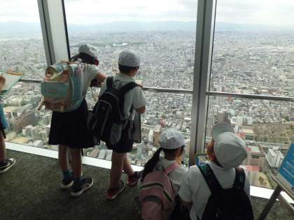 展望台までのエレベーターの中から大興奮の子どもたちでした。