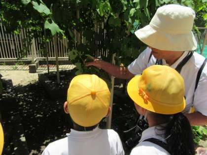 いきものさがしの出前授業がありました。グループごとに勝山小学校の運動場、体育館裏、学習園でいきものを探し、植物や虫をたくさん見つけました。 勝山小には、何種類のいきものがいるのでしょう?(2回目の出前授業で答えが分かります。)いろんな場所にいろいろないきものがいて、みんな支えあっているという「生物多様性」についても教えていただきました。2回目のいきものさがしが楽しみです。