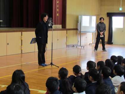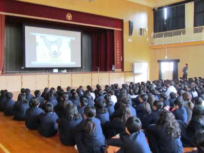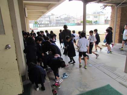 その後全員体育館に避難しました。みんな静かに冷静に行動することができました。体育館では、不審者に出会ったときにどのような行動をとればよいか、また、被害に合わないようにどのように注意すればよいかなどビデオを見ながら、詳しく教えていただきました。
