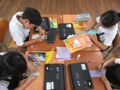 願い事を書いた後は、友達と仲良く飾りつけの折り紙を作っていました。