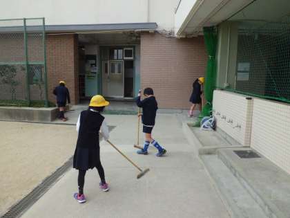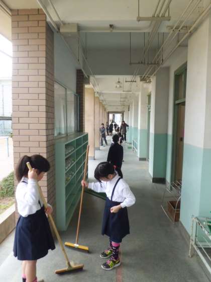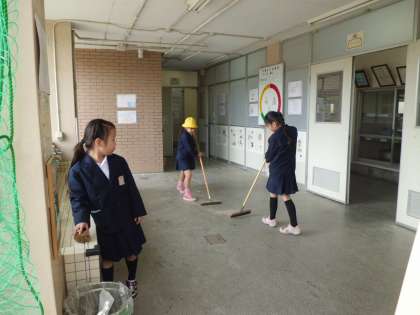 今日は子どもたちが毎日している清掃活動の様子を紹介します。それぞれの場所にわかれて、頑張って掃除をしています。